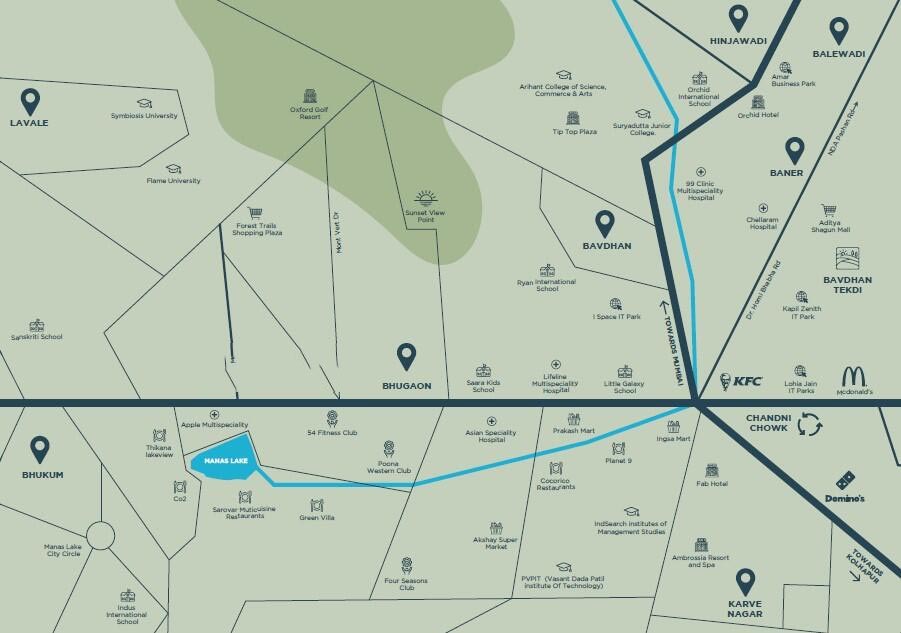 Nestled in the prime location of Bhugaon, Kohinoor Woodshire offers excellent connectivity across Pune. With easy access to Chandni Chowk, Paud Road, and NDA Road, this well-planned community ensures swift travel to major IT hubs, business centers, renowned educational institutes, healthcare facilities, and entertainment destinations. Its close proximity to the Pune-Mumbai Highway further enhances convenience, making everyday commutes smooth and keeping you well-connected to everything that matters.